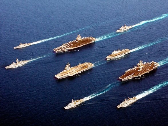 Американские корабли идут на Крым Речь идет о новейшем атомном авианосце «Джордж Буш» и группе сопровождения из 16 надводных судов и трех атомных подводных лодок. Неофициально сообщается, что флотилия входит из Эгейского моря в Дарданеллы.