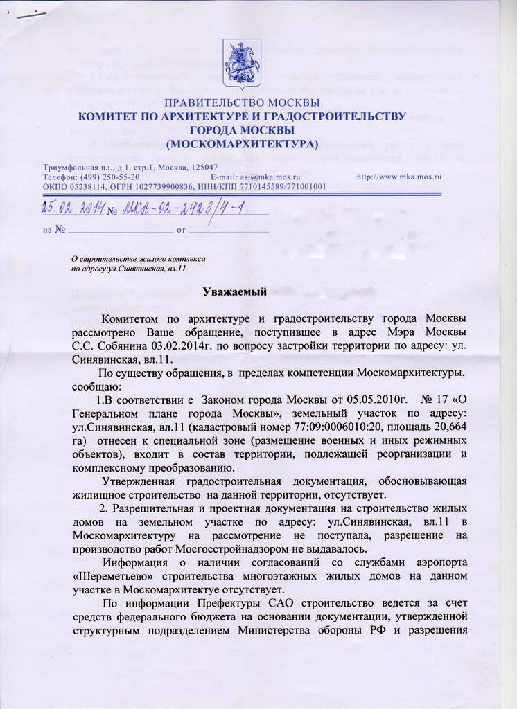Ведь еще до начала строительства МО сделало запрос в Московскую Мэрию, от куда за подписью Собянина и пришел, написанный на русском языке ответ с возможностью застройки этой самой территории в МЛЖ.