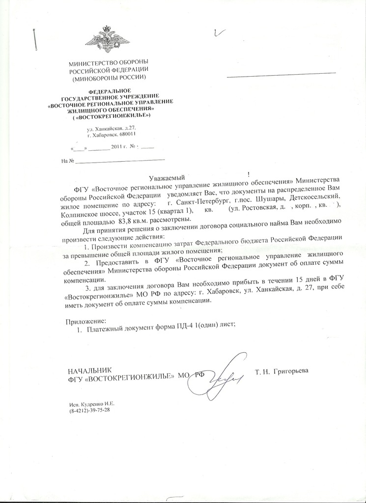 Я старший прапорщик. Пришло извещение. Цытирую: ВАМ НА СОСТАВ СЕМЬИ В КОЛ-ВЕ 2-Х ЧЕЛОВЕК С НОРМОЙ ПРЕДОСТАВЛЕНИЯ ЖИЛОГО ПОМЕЩЕНИЯ ДО 61 КВ.М. РАСПРЕДЕЛЕНО ЖИЛОЕ ПОМЕЩЕНИЕ 67,1 ДОПЛАТИТЬ ЗА 6,1 КВ. М. Собираю документы. Может кто подскажет, чем это закончится, ведь на 2 положно 45, а доплатить можно до 18, а тут 22,1 К ЧЕМУ ГОТОВИТЬСЯ?