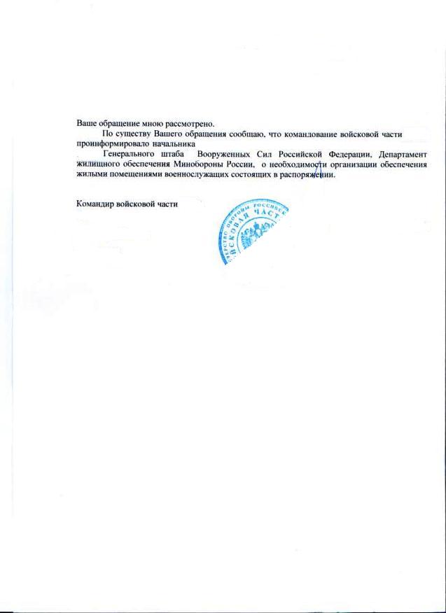 Кекс02 ну какая клевета, ДС четко указало, что ДЖО МО обязано делать согласно приказ МО РФ 1550, а также сообщило, что с 2010 ничего закупало, да и ответ из ДЖО это косвено подтверждает. Если это клевета тогда где жилье в г. Реутов