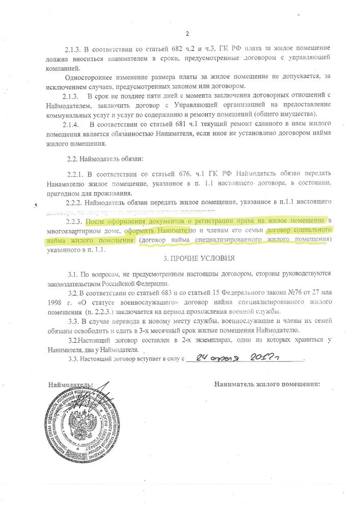 24 апреля 2012 года мне был выдан договор найма жилого помещения (именно просто найма, не социального найма), последним пунктом которого было "