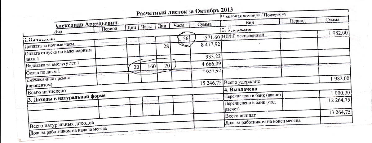 Это песня! Что в расчётных листах (они есть?)? Ст.136 ТК РФ.4.Начисление з/п происходит как 8-ми часовой рабочий день,5 дней в неделю, 4 недели в месяц. 160 часов.Но прибавляют 56 ночных.Как-непонятно! Поинтересовались-как так?Ответ был фантастический-вам так больше начисляют,а если будут начислять по-суточно будет меньше.(в месяц 7 дежурств)О выплате 15% надбавки-неположено! Я попросил показать того финансиста,который противозаконно будет начислять больше,чтобы его расцеловать. Ответом была тишина.