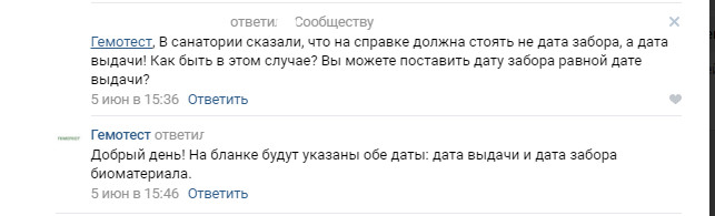 #12930как бы Гемотест не единственная лаборатория в России, в моем городе она одна из 5 разных, и как минимум в двух из них на бланках результата пишется только дата взятия.Кто вам такое сказал?QR_BBPOST да, вот именно такая проблема и есть! у нас тест могут сделать и за день и за 10 рабочих дней, при этом в бланке одна дата-дата взятия биоматериала.