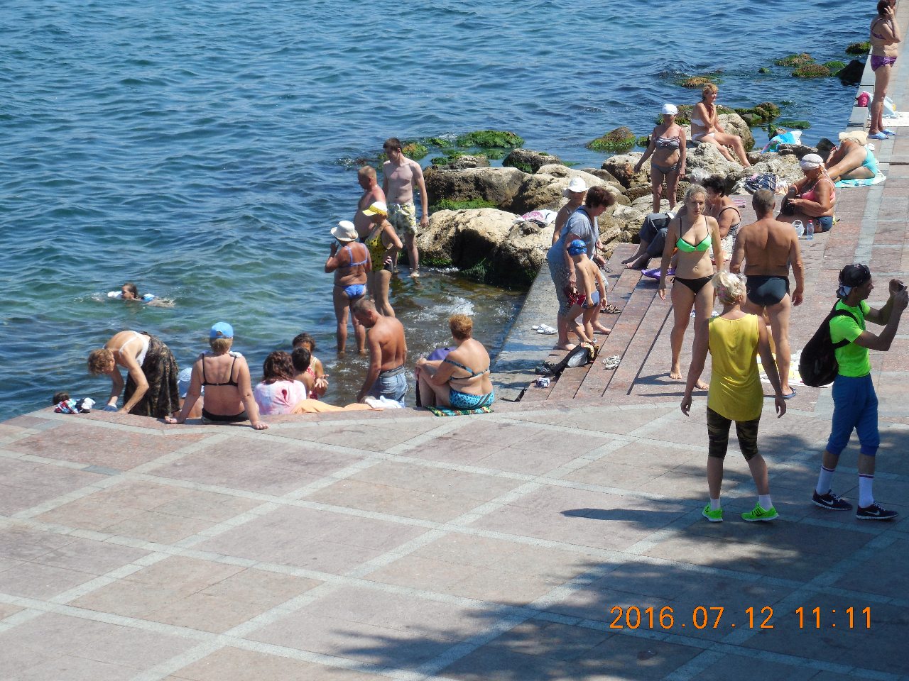 #1815В тени +25° C, на солнце +30-32 C°Туристы купаются прямо на набережной Артбухты г.Севастополя.