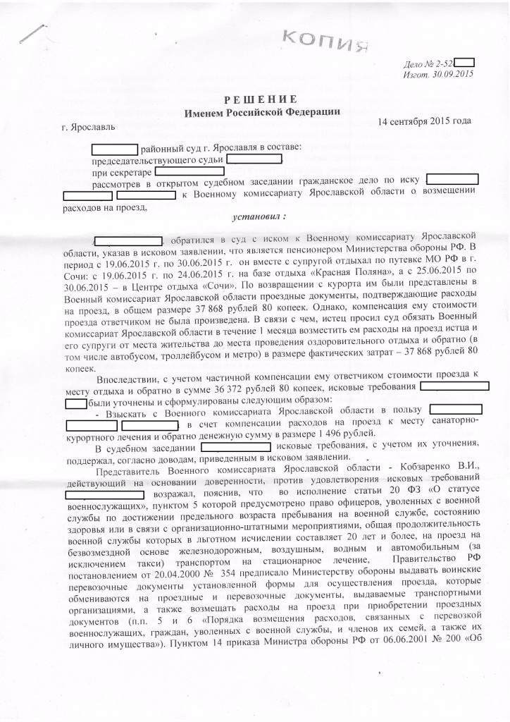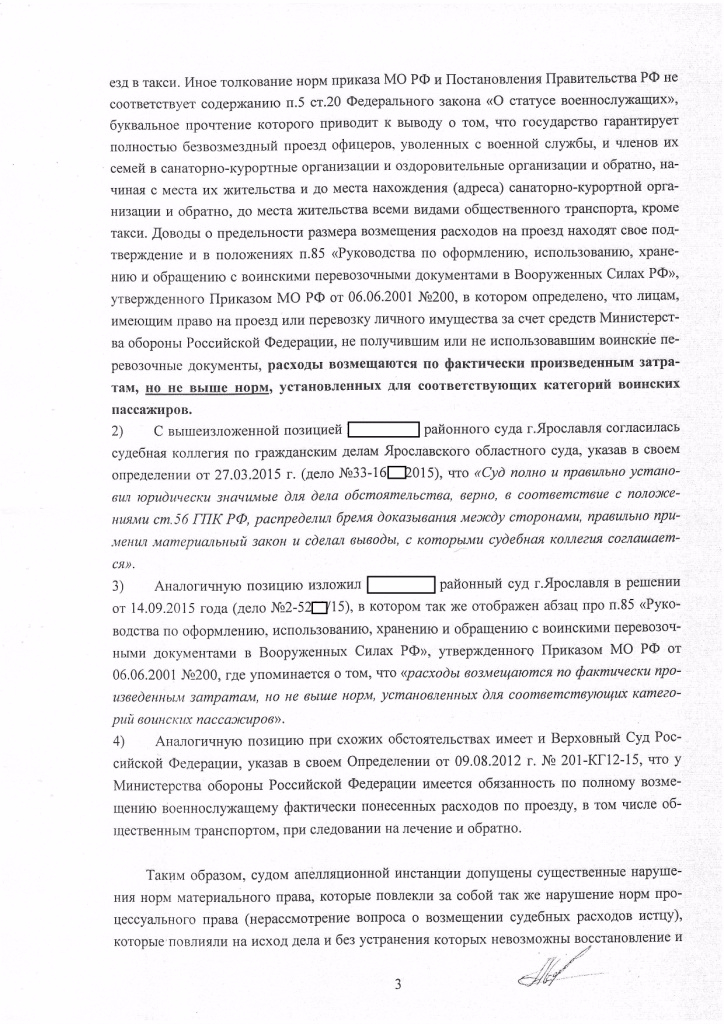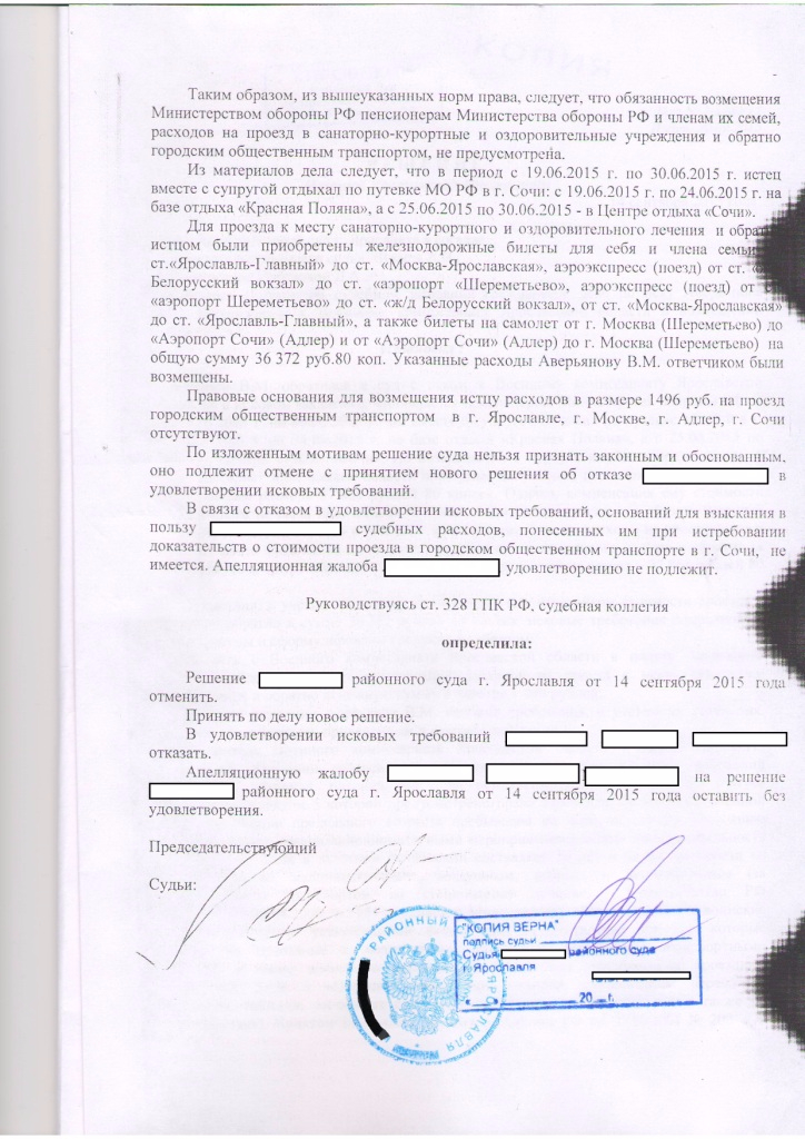 #1891Уважаемые форумчане, В этом году за 2015 год мои старания о защите права на проезд автобусом, троллейбусом и метро от места жительства к месту проведения оздоровительного отдыха и обратно пока не увенчались успехом, не смотря на то, что в 2014 году мне такой проезд возместили (судебные акты первой и второй инстанции суда сюда выставлял).