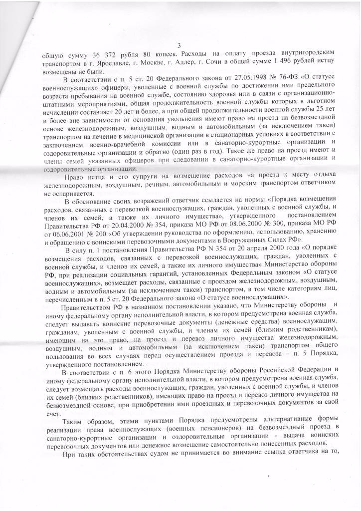 Почему же они считают, что не предусмотрено, если в п.5 ст.20 Закона РФ "О статусе военнослужащих" указано: "... имеют право на проезд на безвозмездной основе железнодорожным, воздушным, водным и автомобильным (за исключением такси) транспортом на лечение в медицинской организации в стационарных условиях в соответствии с заключением военно-врачебной комиссии или в санаторно-курортные организации и оздоровительные организации и обратно (один раз в год)"?