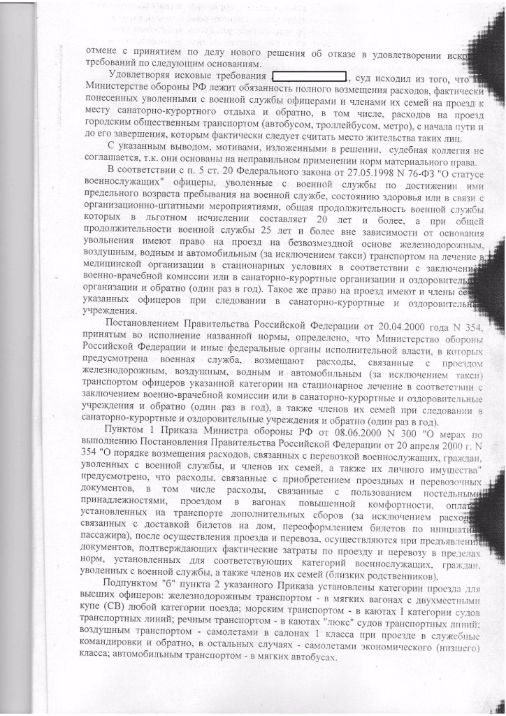 #1895По существу нужно было подать в КС жалобу на п.5 ст.20 Статуса как необоснованно огрантчевающего право военпенса на проезд к месту санаторного отдыха городским транспортом. Можно было подать в КС и на неопределенность данного пункта.