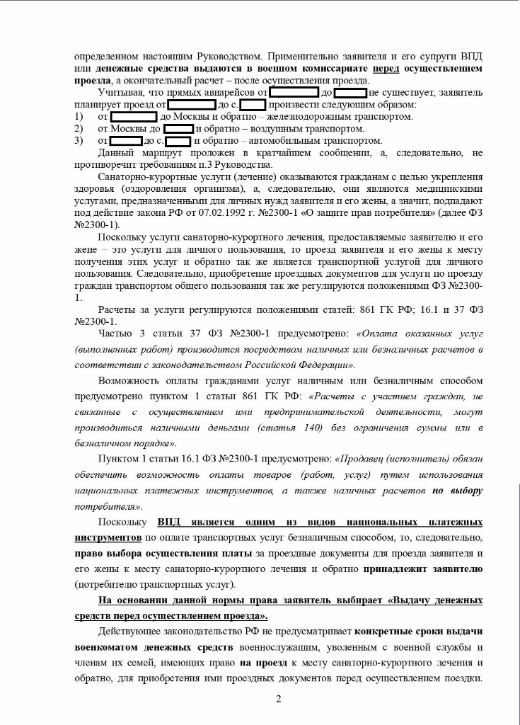 #2857У Вас есть аргументы, говорящие об обратном? Кроме цитаты из НПА "....имеют право на проезд на безвозмездной основе железнодорожным, воздушным, водным и автомобильным (за исключением такси) транспортом на лечение в медицинской организации в стационарных условиях в соответствии с заключением военно-врачебной комиссии или в санаторно-курортные организации и оздоровительные организации и обратно (один раз в год)".QR_BBPOST А основания для такого вывода привести не желаете?