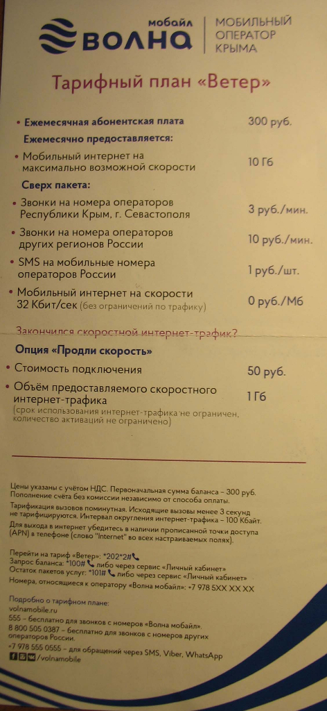 #3692Всем доброго времени суток! Хочу добавить пару слов по интернету в Севастополе. Дня за три-четыре до моего отъезда неожиданно шустро начал работать местный мобильный инет. Уже писал, что по приезду брал симку за 350 рублей за 10 Гб. Сначала тупил по-чёрному, к концу разродился. Ближайшее место от базы, где можно купить - киоск рядом с причалом "Радиогорка". Вполне приличный вариант, считаю, что один из самых приемлемых. Прикреплю его описание. И ещё для отъезжающих после 23.59 дня окончания путёвки: доплата за каждый час пребывания "сверх норматива" = 97 рублей с человека. Это в номере ПК, остальные приблизительно в этом районе. Всем приятного отдыха!!!
