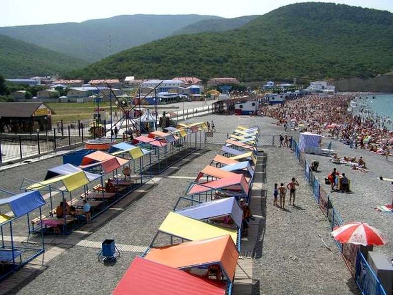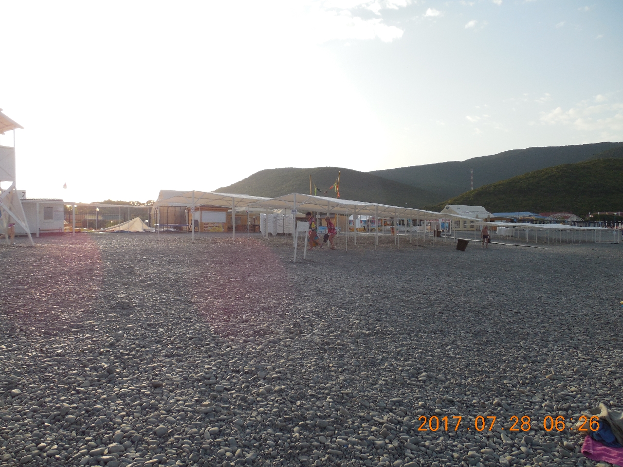 Место, фото которого Вы сюда выставили, выглядит теперь иначе. Навесы остались, но никаких дорожек из деревянных настилов нет. Кругом асфальт. и все это место находится на территории санатори, а не на побережье, до которого150 метров еще идти надо. Это Вы называете пляжем? Почему бы тогда не назвать пляжем любой другой участок земли санатория, где бы Вы смогли на газоне разместить свой лежак? Под деревьями у моста №1 полно было таких загорающих на лежаках, расставленных прямо на зеленой траве газонов. Потом это дело правда пресекли, ночью все лежаки с территории санатория собрали в одну кучу под навесы и сквозь ножки всех лежаков протянули стальные тонкие тросики с замками.