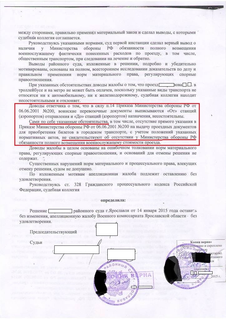 А в судах что боги восседают? Они не могут "ошибаться" ("заблуждаться"? Особенно коррумпированные)? Если в законе ПРЯМО прописано "Проезд на безвозмездной основе", то какой еще смысл в это словосочетание может быть заложен, кроме как весь проезд от "места жительства" до "СКУ" и обратно на всех видах транспорта (кроме такси) - ОСУЩЕСТВЛЯЕТСЯ БЕСПЛАТНО ДЛЯ ВОЕНПЕНСА?QR_BBPOST Даже есть решение ВС РФ на эту тему.