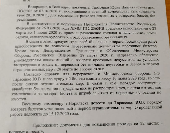Ситуация возникла при сдаче билетов на самолет, купленных в январе 2020 года по ВПД. В дом отдыха Подмосковье я с супругой должен был попасть с 28 марта. Но 27 марта узнал о том, сто нас не примут. срочно пошел в кассу, для сдачи билетов. проживаю в городе Норильск. Касса авиакомпании Нордстар одна. Очередь на сдачу билетов, как в 90 е годы на приобретение. Дали номерок 80. Простоял 4 часа, обслужили 30 человек. До закрытия кассы не успевал. Подошел к кассиру, уточнить информацию по сдаче билета, так как вылет на следующий день. Она быстро сдала места, и посоветовала сдать билеты позже, когда спадет ажиотаж. Потом кассы закрылись до 1 июня ( не отслеживал) . 10 июня сдал билеты. При сдаче билетов (4 шт) с меня удержали наличкой около 5000 р. Звонил в военкомат, сказали, что оплатят.Сдал документы, и получил неутешительный ответ. Сдавать билеты ( а не места) надо было до 1 июня. Кассир при сдаче билетов мне сказала, что МОРФ не заключала договор на обслуживание, билет я сдал добровольно, рейс улетел, поэтому стоимость сдачи, как при добровольном отказе, т.е с штрафными санкциями. И вроде сумма не очень большая, и время прошло прилично, но почему то обидно, что я же получился виноватым, что Дом отдыха закрыли. Хочется отстоять свое право на возврат. Буду рад, услышать мнение форумчан.