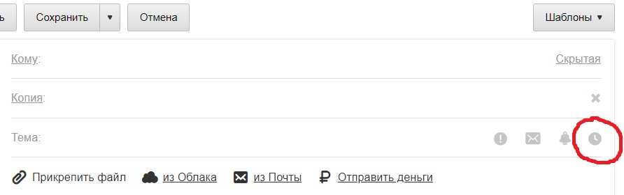 #8777Справа от темы отправляемого сообщения нарисована кнопка часы...(почта mail.ru)[ref]ПИАМА[/ref], так и не ответили, какой программой/приложением отправляются файлы в нужное время? вроде браузер такой функцией не обладает.