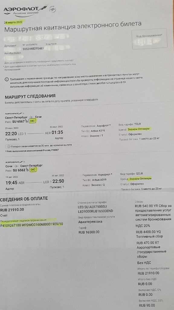 #8893Сорри,... я может быть чего-то не понимаю в этой жизни, но... не храню даже квитанции жкх, не то, чтобы маршрутные... )....выкладываю билеты за 2020 (Маршрутная квитанция от 28 июля, т.к. было изменение номера рейса без изменения первоначально в апреле выбранного места), 2021 и 2022 годы.