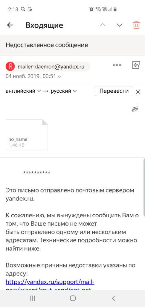 Предполагаю, что почтовый сервер санатория настроен по-умному: не принимает сообщения с неполным комплектом документов или с какими-то другими неточностями. Отправлено спустя 26 минут 13 секунд: