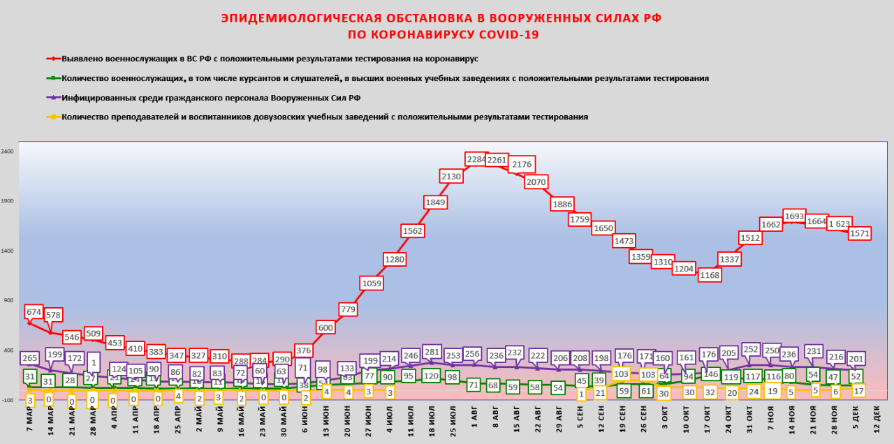 #2862Обстановка в ВС РФ с covid-инфекцией (источник данных: http://www.mil.ru/ )