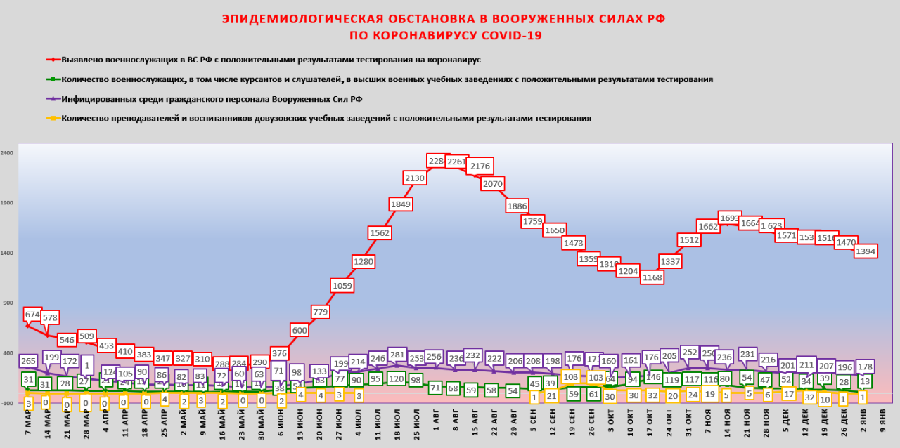 #2956Обстановка в ВС РФ с covid-инфекцией (источник данных: http://www.mil.ru/ )