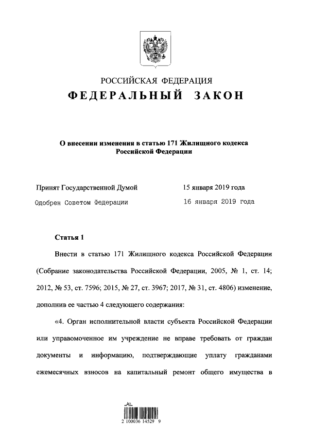 А потом были внесены изменения и стало выглядеть так:1. Собственники помещений в многоквартирном доме, принявшие решение о формировании фонда капитального ремонта на счете регионального оператора, а также собственники помещений в многоквартирном доме, не принявшие решение о способе формирования фонда капитального ремонта, в случае, предусмотренном частью 7 статьи 170 Жилищного Кодекса РФ, обязаны заключить с региональным оператором договор о формировании фонда капитального ремонта и об организации проведения капитального ремонта в порядке, установленном статьей 445 Гражданского кодекса Российской Федерации, при этом уплата собственником помещения в многоквартирном доме взноса на капитальный ремонт на счет регионального оператора после получения им проекта такого договора считается его заключением. При этом собственники помещений в этом многоквартирном доме, обладающие более чем пятьюдесятью процентами голосов от общего числа голосов собственников помещений в этом многоквартирном доме, выступают в качестве одной стороны заключаемого договора.