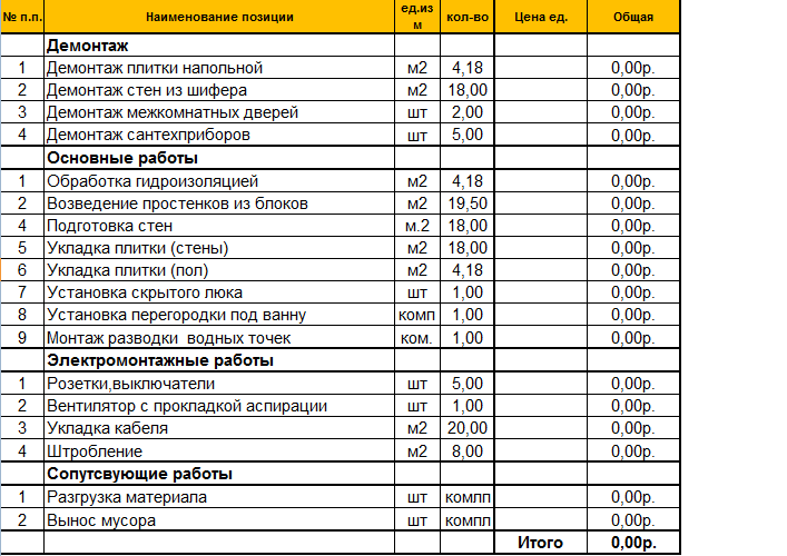 Максимальная цена (Мастера из Москвы) - 368 000 рублей но без учета электрики и выноса мусора. (словесная гарантия 36 месяцев)