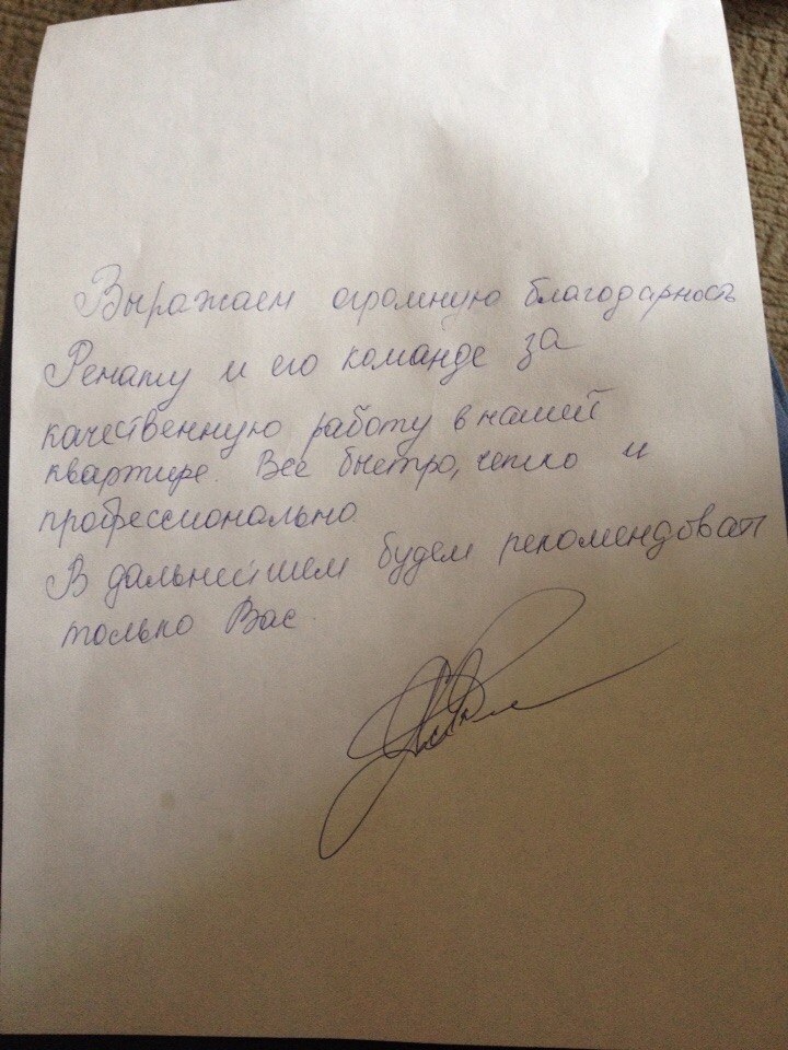 - Примерно через неделю после подписания акта, клиент попросил поменять местами горячую и холодную подачу воды в ванной т.к. кран не стандартный (Вода наоборот) и на гарантии.Стоит много денег.Причем Царев А.В. Дозвонился сразу, наши специалисты пришли на квартиру в течении 30 минут.