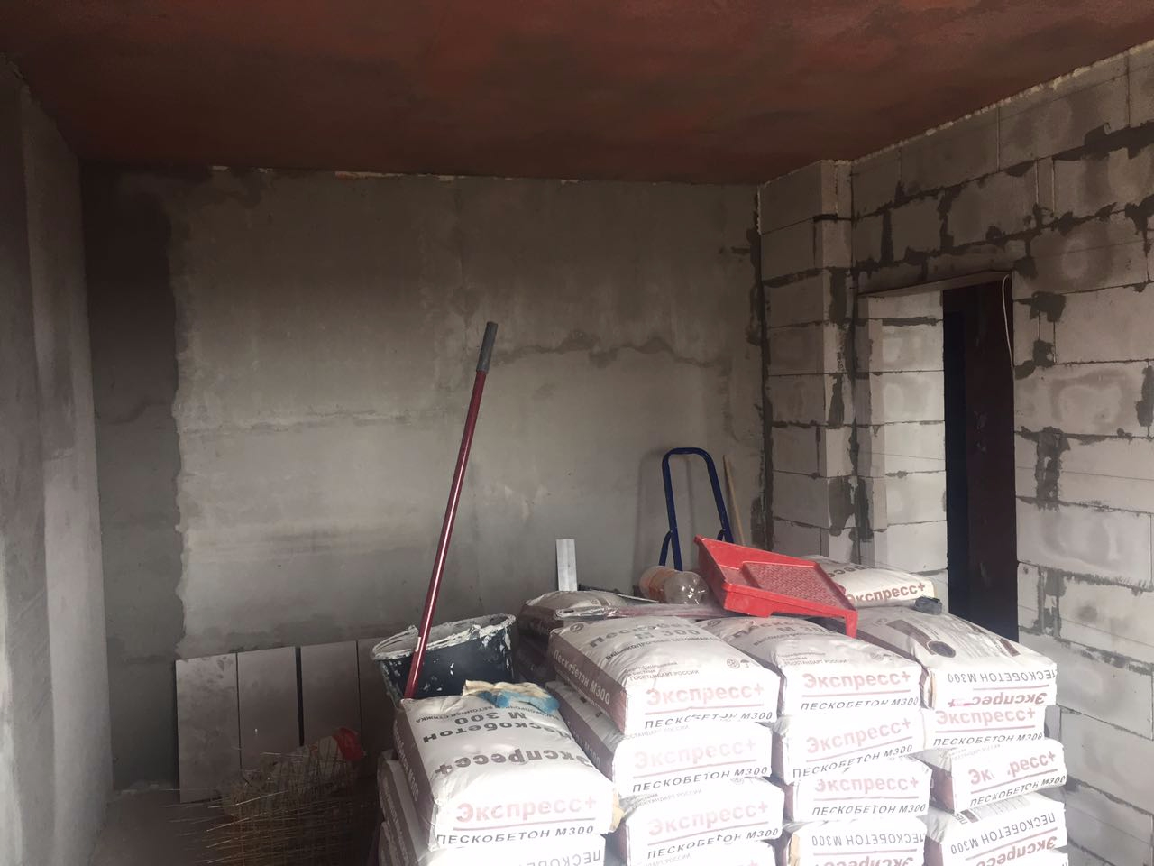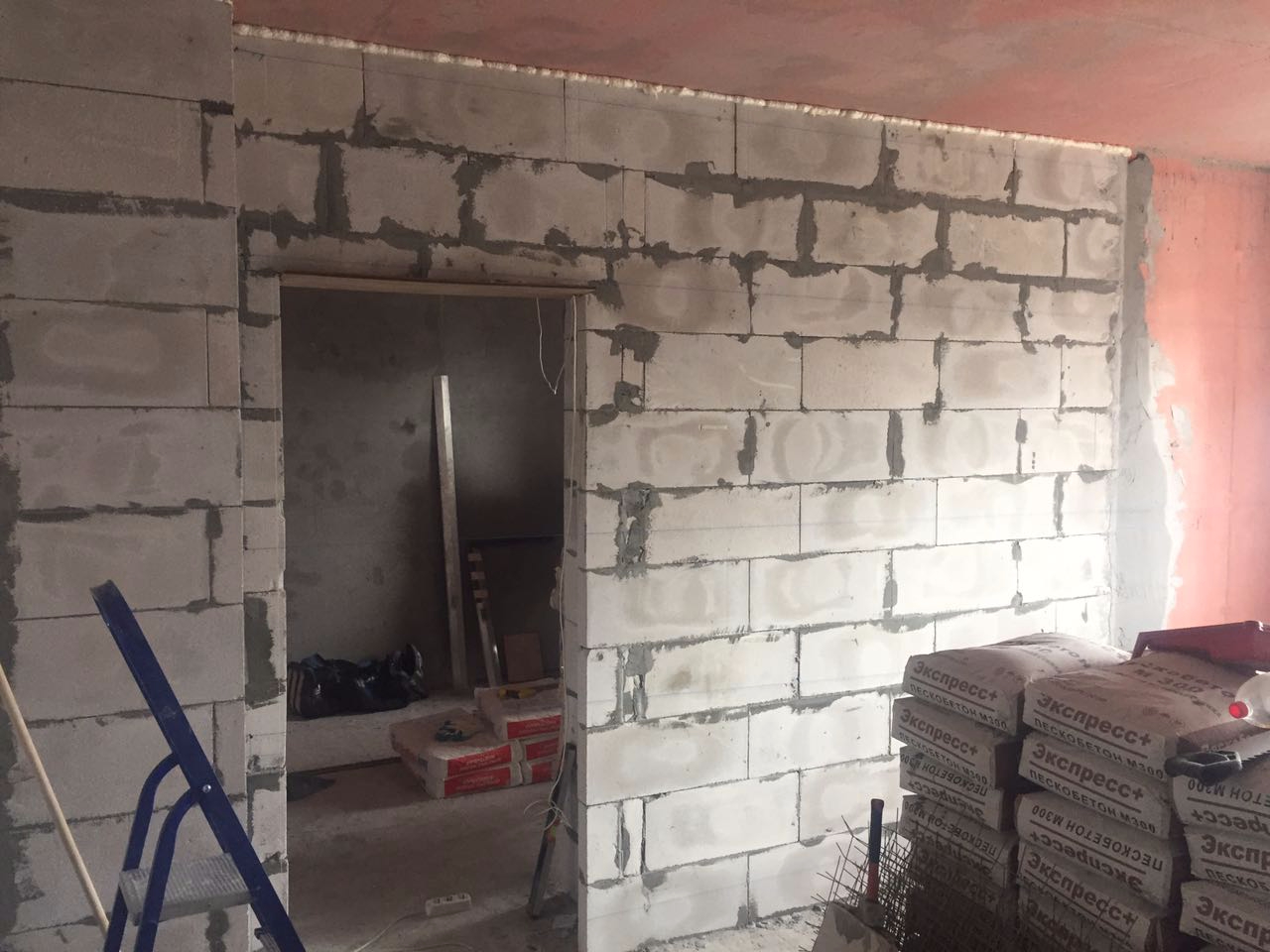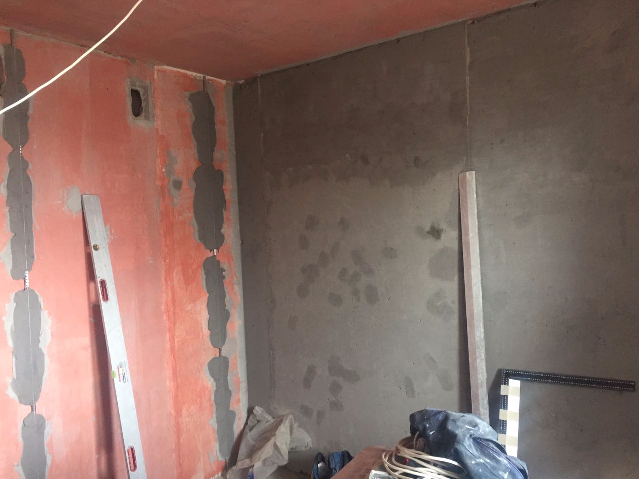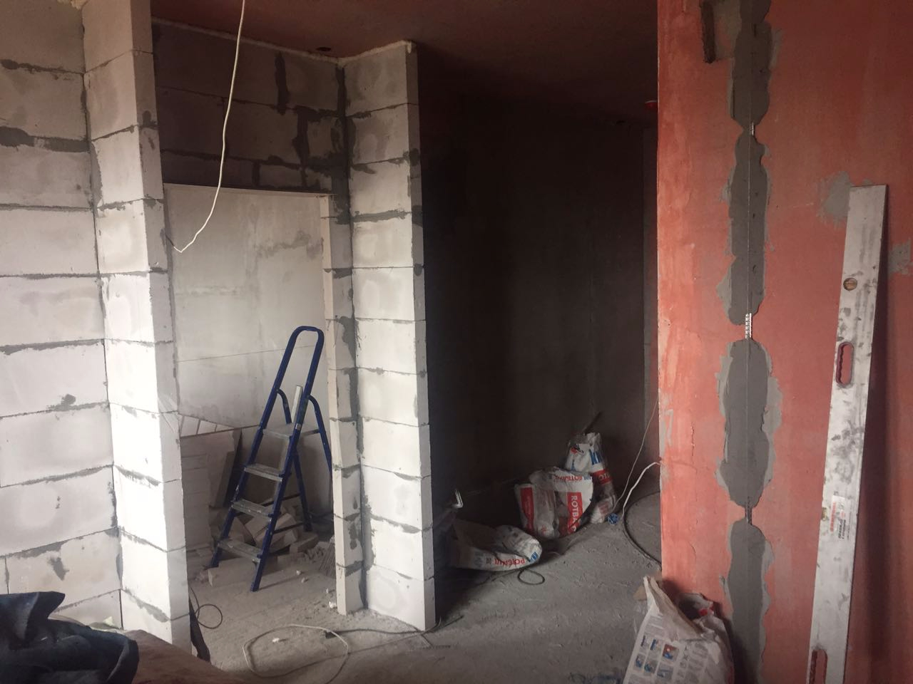 Менее чем за полторы недели выставили стены в квартире свободной планировки и отштукатурили стены.