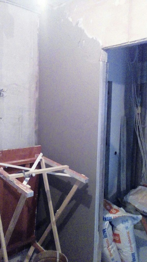 #384Дошла очередь до ванных комнат. Начата подготовка стен под плитку.
