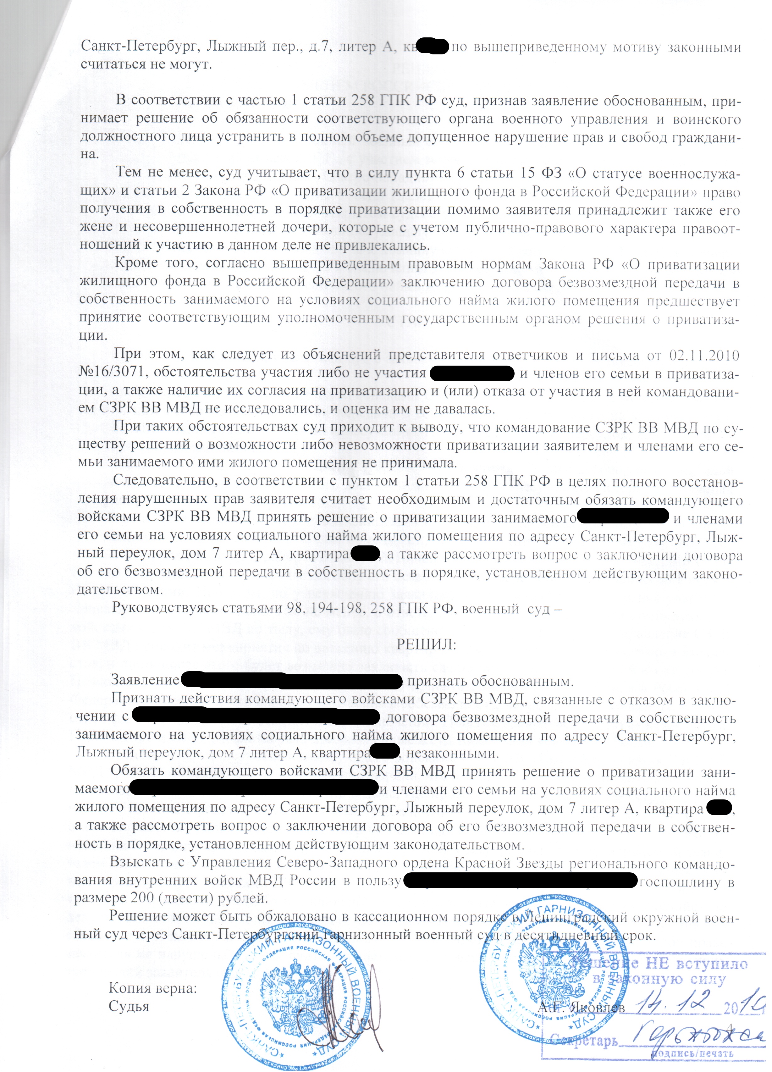 Через некоторое время выяснилось, что при выделении квартиры мне ЖК части нарушила очередность и я добровольно передал квартиру законному очереднику и прописался при части (с декабря 2007 года) . (сейчас говорят, что этим я тоже намеренно УЖУ).
