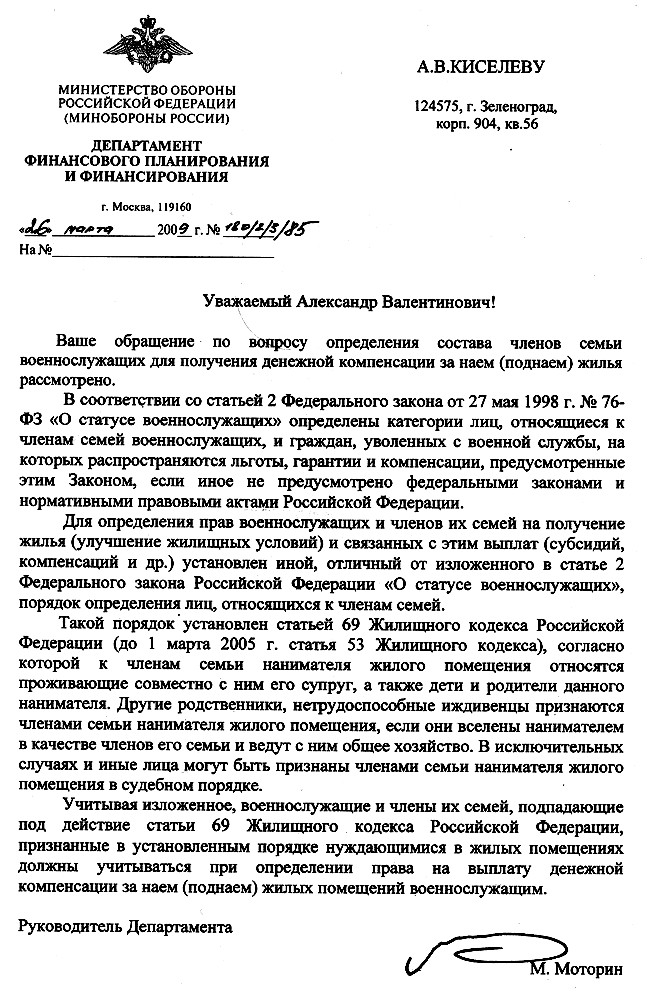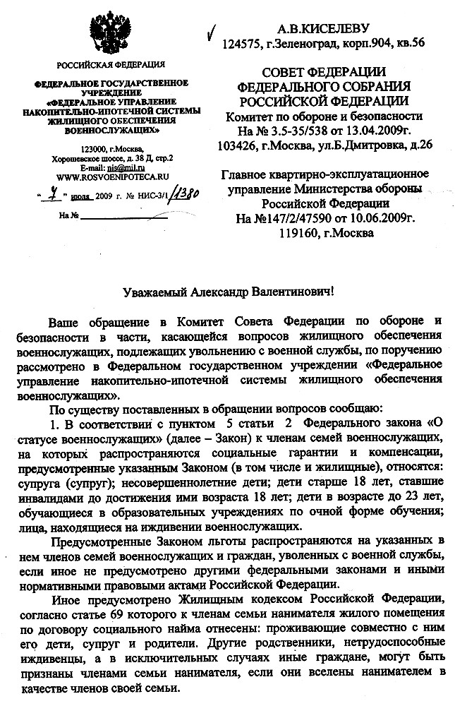ЖК РФ, ФЗ "О статусе военнослужащих"