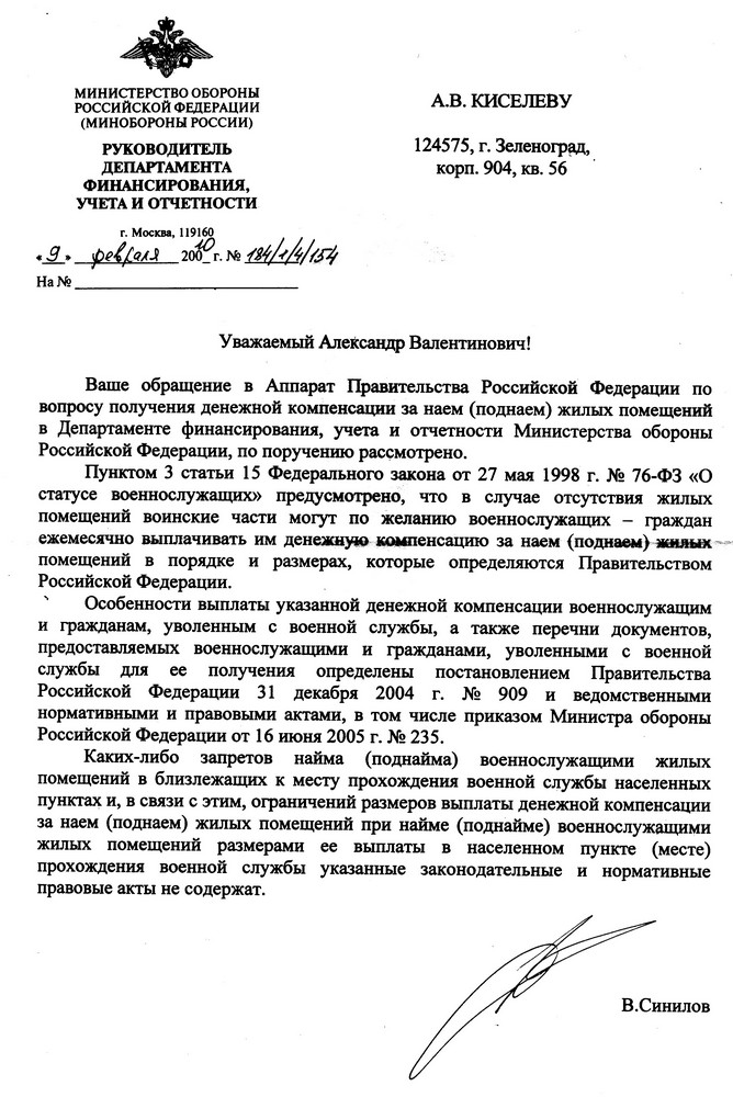 Сейчас компенсацию выплачивает УФО, на основании приказа командира части.Всем привет. С августа месяца не платят поднаем. Мой штаб ВМФ в Питере, а все распоряженцы штаба в Москве. Приказ издает Министр, выплаты призводит то ли ЕРЦ, то ли ФБУ. Вопрос к знающим... Кого выставлять ответчиком?