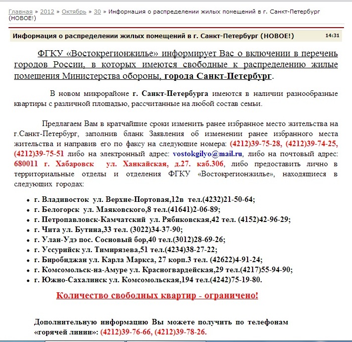 Контрактнику на семью из 3-х человек дали служебку-трешку