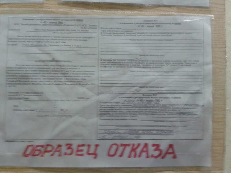 И еще. Сегодня тов.Гринев выходил к 109 кабинету и пугал народ что теперь после одного отказа от квартиры ДЖО будет подавть данные в КАДРЫ и те будут готовить военнослужащего к увольнению. И якобы суды сказали "добро". Знаю, что звучит все это немного забавно.