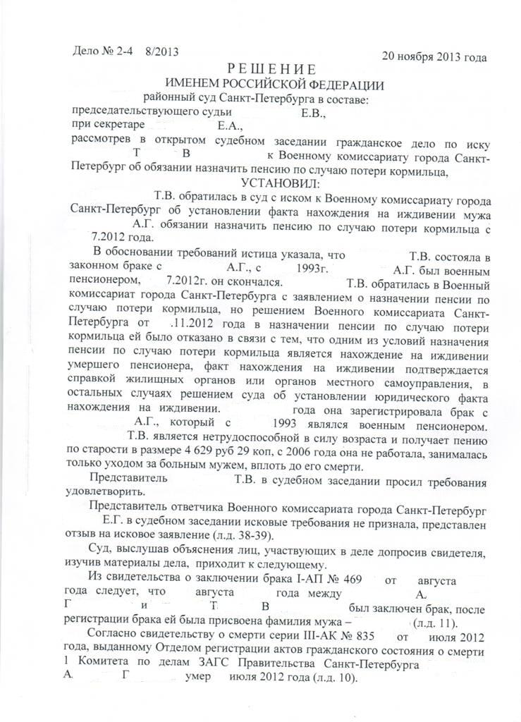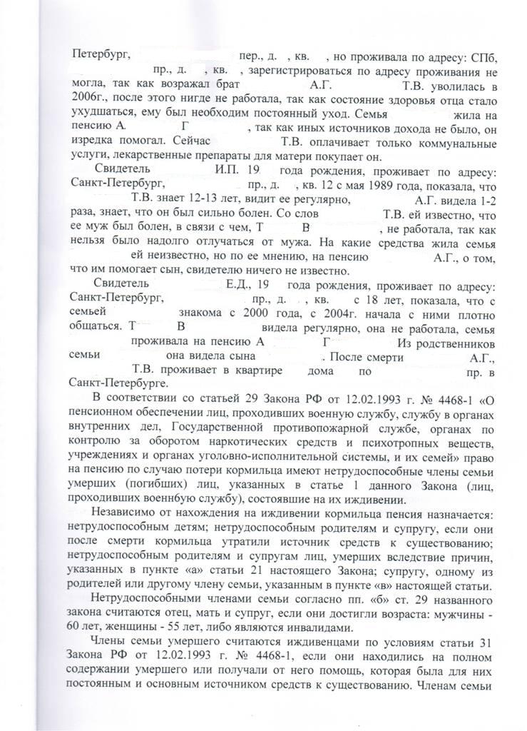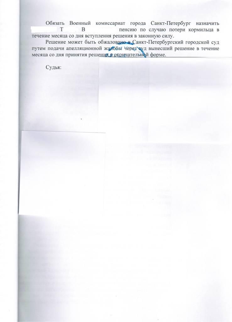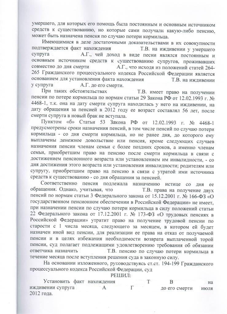 Добавлено: решением суда пенсия по потере кормильца назначена.