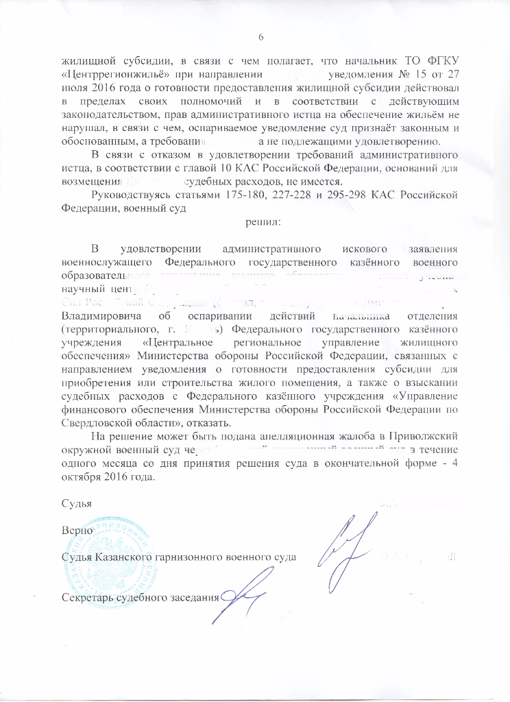 указанной даты место жительства. ". НО уже 26 сентября судья Сокерин отказал в передаче кассационной жалобы о пересмотре решения в пользу уволенного военнослужащего даже не смотря на то что отказы от ЖП были в 2012 году. Не судьи больные а система.