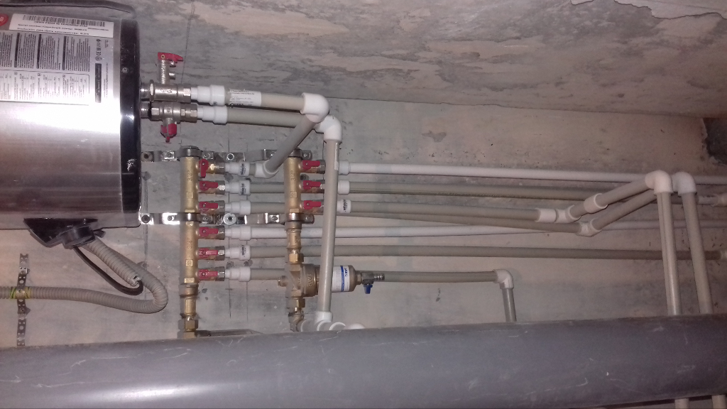 Заменили радиаторы и доделали разводку по воде и электрике.