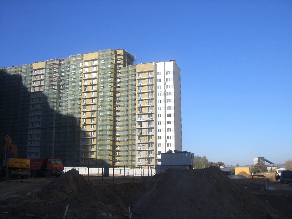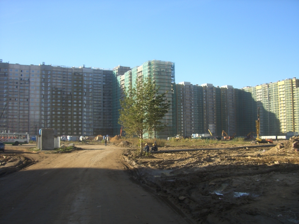 На территорию бдительные охранники не пустили. Пришлось "вести репортаж" с Балашихинского шоссе. На снимках дом (из нескольких секций) вдоль того самого шоссе. Рельсы, которые в него упирались, превращаются в траншею. По ней будет проложен сток (канализация) - км на 7. Само строение, по словам строителей, уже сдано и, практически, дана отмашка на отделочные работы. Шансы сдать этот дом к НГ, по словам строителей, довольно высокие. На территории, описанной в сообщениях 107-114, видно только работу экскаватора.