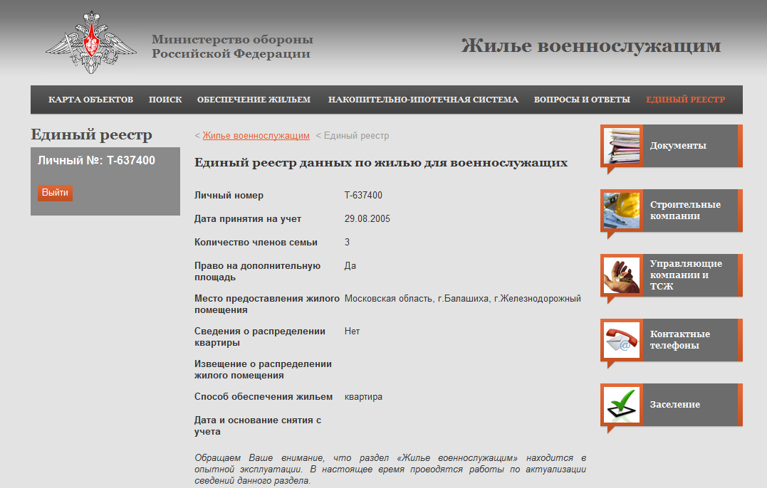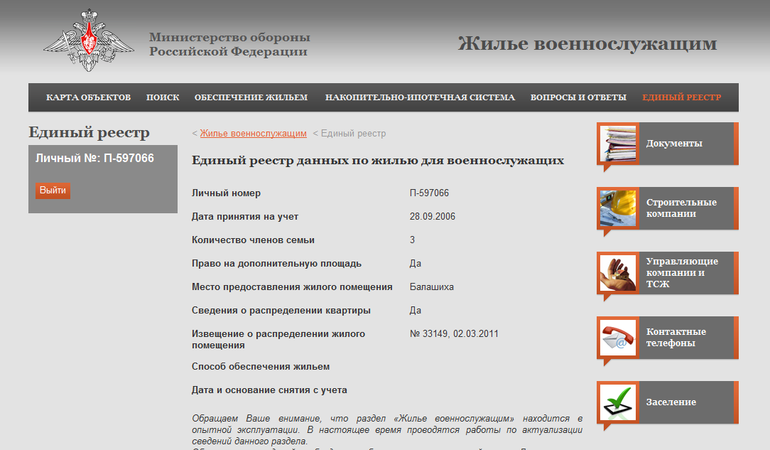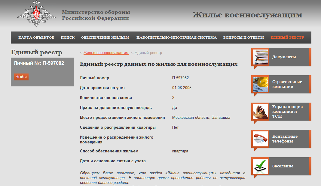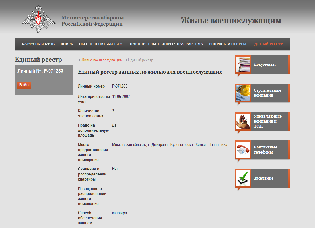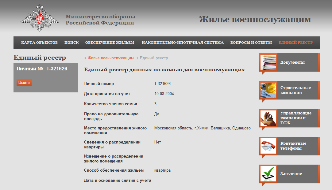 Электронная очередь на жилье Минобороны РФ
