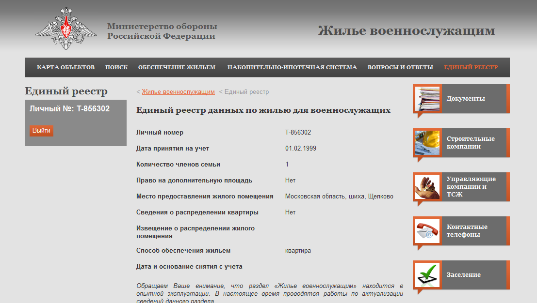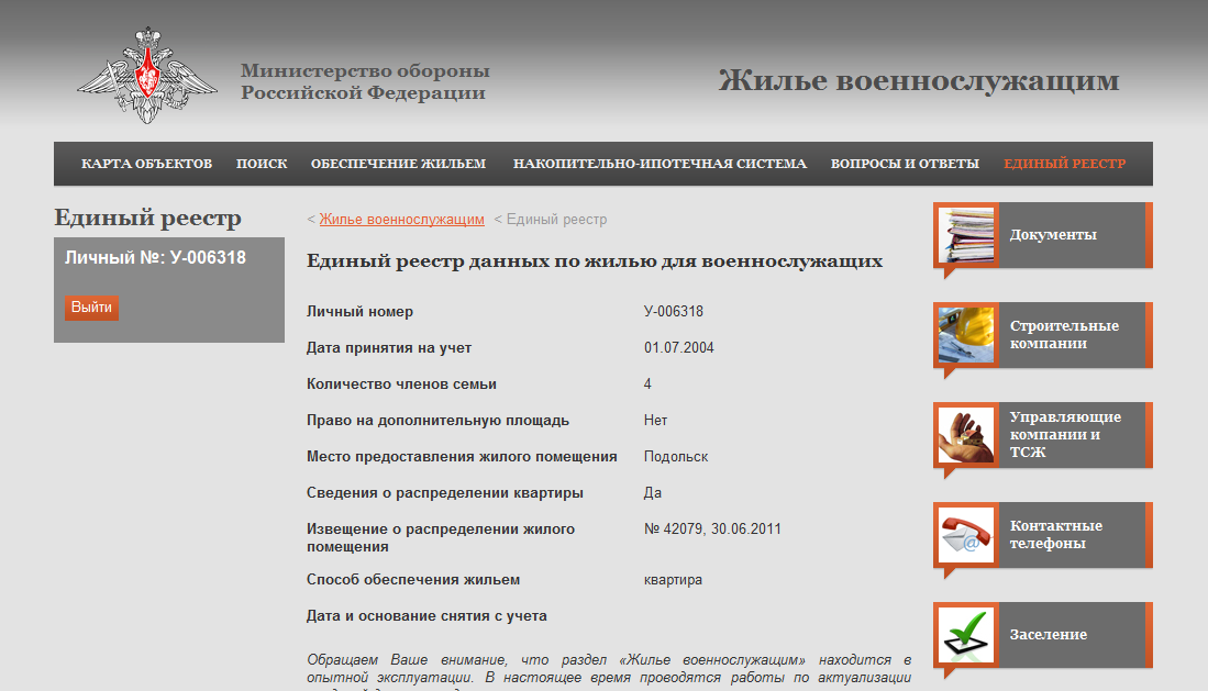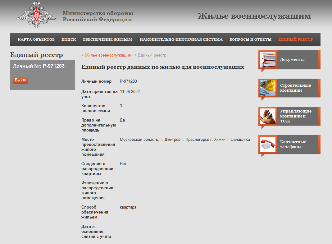нет сейчас уже в основном все ровно Московская область, Подольск это нормальный претендент на жилье а те кто получил Подольск пишут, тем кто ждет ни у кого нет просто Подольск, это я знаю точно по выпискам которых уже 5, 5 тыс)) вот здесь https://spreadsheets0.google.com/spread ... c6MQ#gid=1 :rolleyes2: Доступ к базе предоставляется только внесшим свой вклад в сбор данных (в виде информации из реестра Минобороны по 10 личным номерам военнослужащих. Если Вам неизвестны конкретные номера сослуживцев - вводите цифры наугад). Десять полученных по Вашим запросам результатов внесите в форму для внесения данных и укажите там в примечании свой эл. адрес. После выборочной проверки предоставленных данных Вам будет сообщен код доступа.