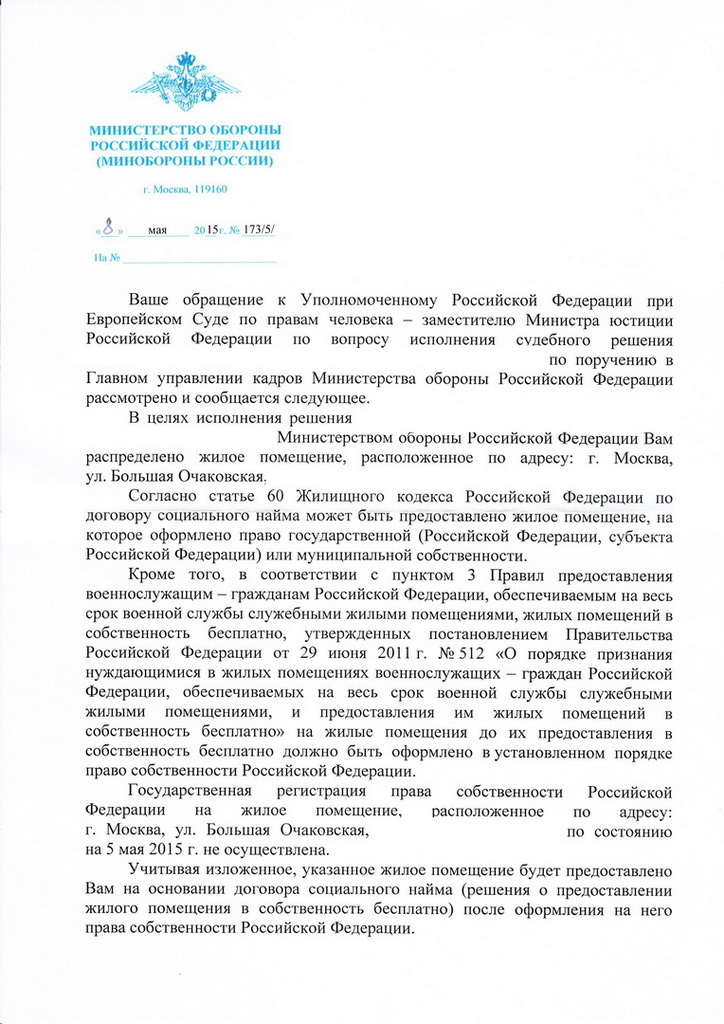 Конечно сейчас Столярова отпишется, что дескать мне был предложен вариант заселения по ДП незамедлительно, но я такая-сякая отказалась. Ничего, у меня еще в ходу 2 жалобы. Потом ее ответ отправлю в СК. Буду добиваться своей квартиры. Еще развеселил такой момент. Она так энергично мне рассказывала о заботе МО по обеспечению жильем в/с. Потом переключилась на заботу обо мне и совсем тихо, словно извиняясь, молвила – предлагаем 9 корпус, правда он тоже без права соб-ти, но (уже опять с пафосом) можно заезжать сразу по ДП. Вы ведь этого хотите?! Нормально. Этак можно договориться, что я уже и ЖС хочу.