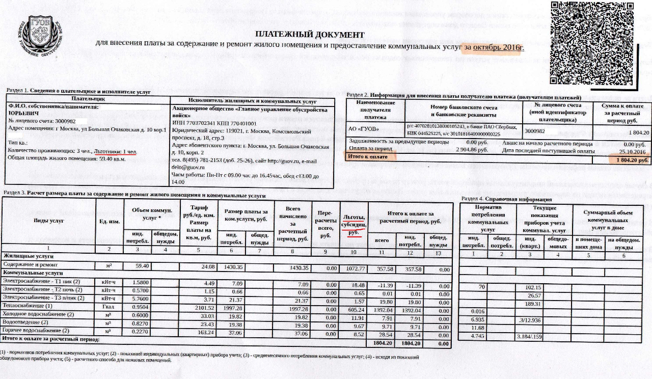 В октябре пришла платежка с перерасчетом, в ноябре со льготами.
