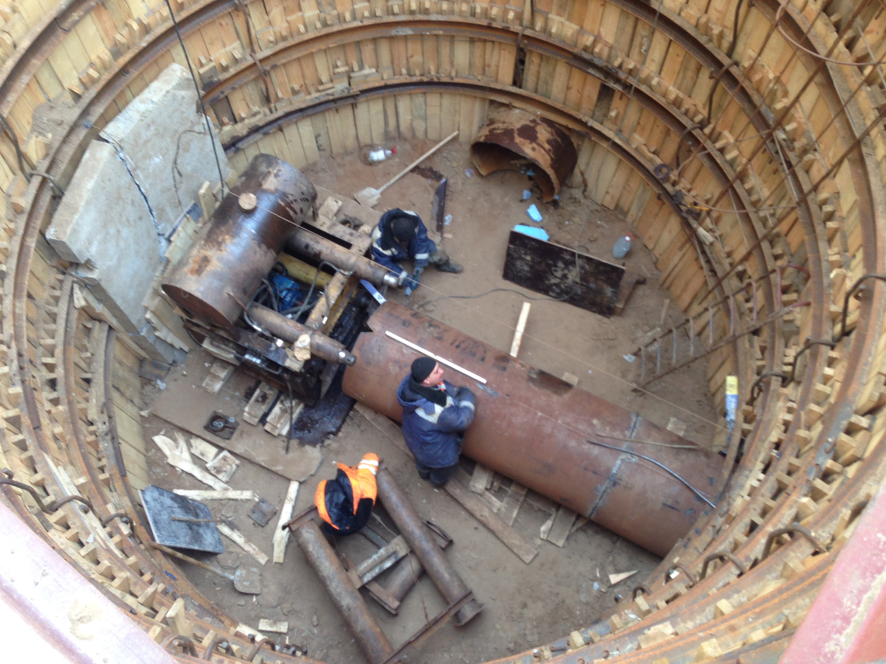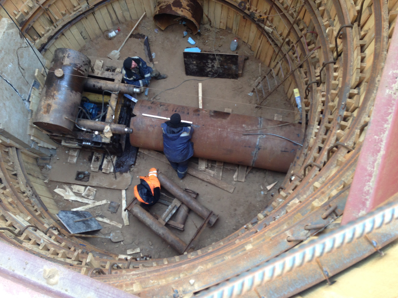 ИнжстройБетон начали прокол на соединение с этой веткой, прошли 3 метра и приваривали следующую заготовку.