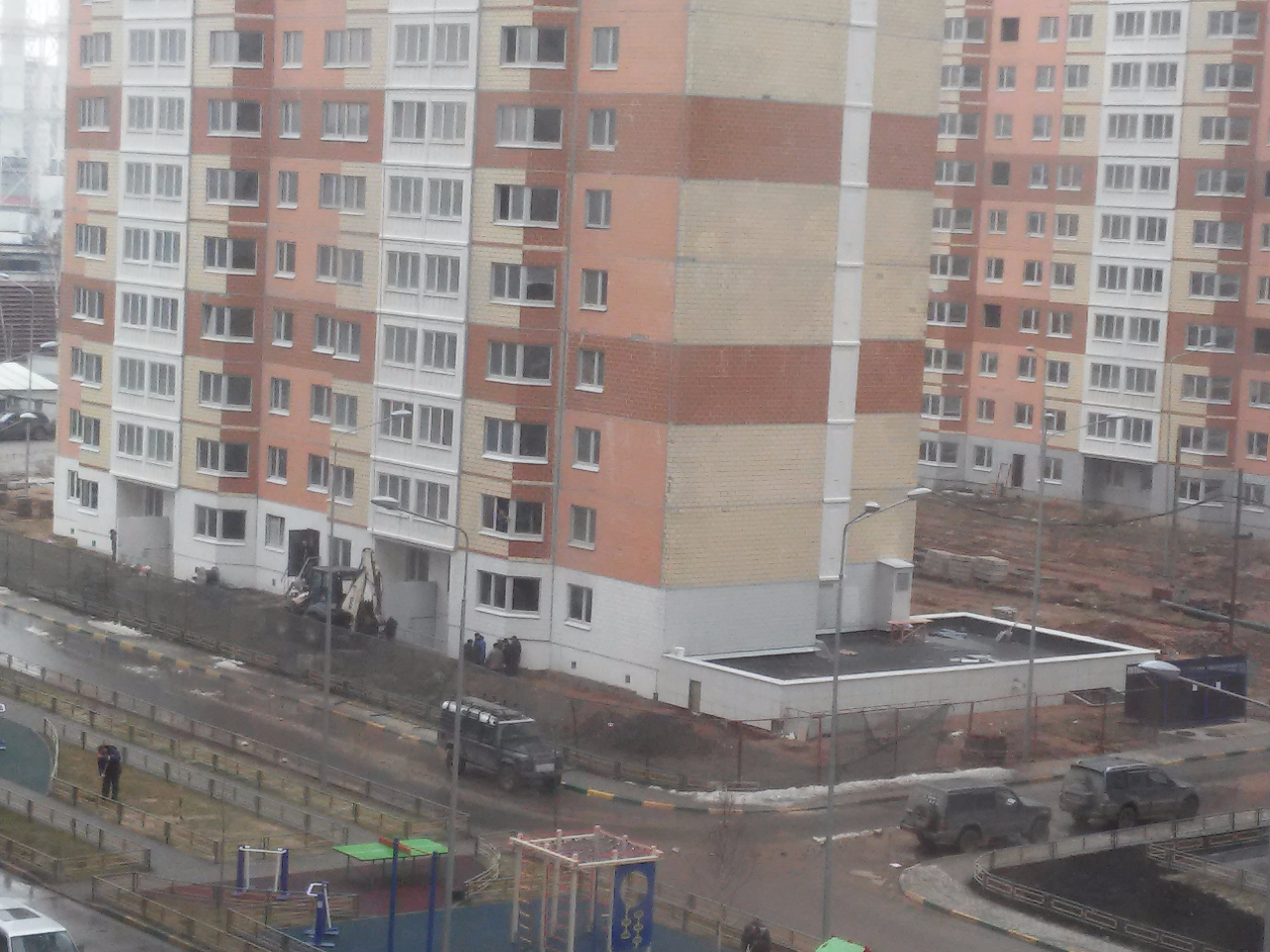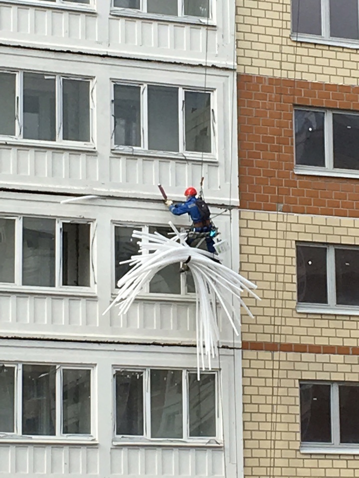 #36184Добрый день!Немного о стройке .привезли материалы для заделки швов и еще что о плохо видно было так как выгружали прямо в подъезд.Работало сегодня 4 альпиниста на 9корпусе и 1альпинист на 22корпусе. Наводят порядки возле 22корпуса привезли бордюры ровняют убирают мусор.Все рабочие с 22 корпуса переехали в 15 корпус там для удобства тоже наводят порядки
