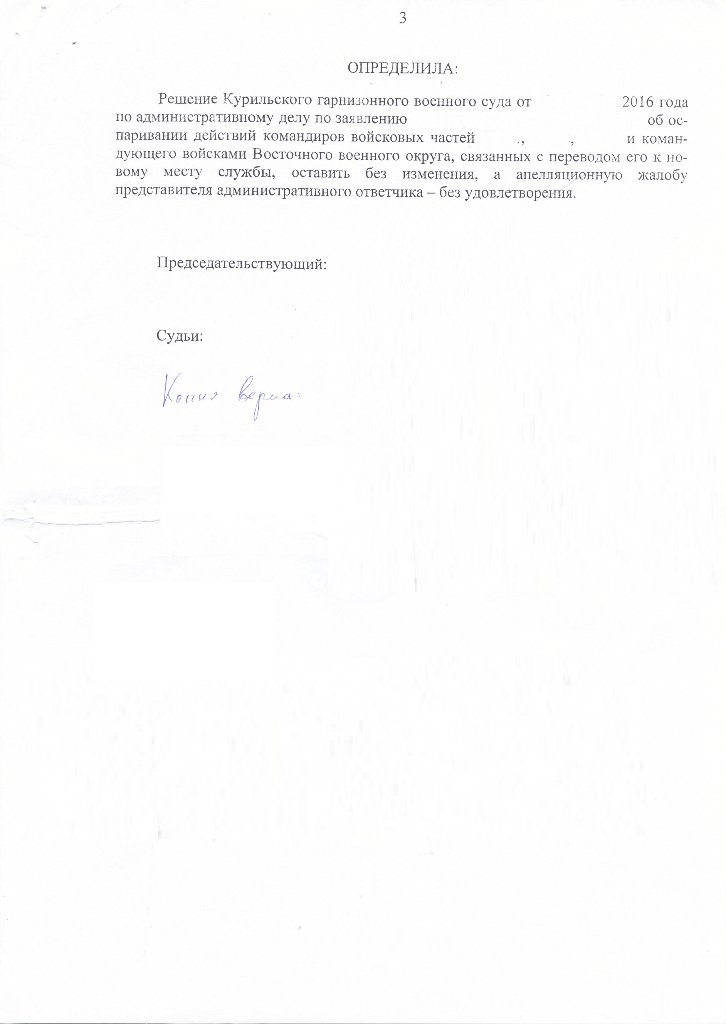 #241Оспаривание приказа о переводе к новому месту службы по служебной необходимости. Решение гарнизонного военного суда и апелляционное определение окружного военного суда.