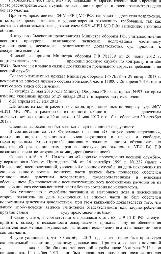 Решение Московского ГВС по незаконному удержанию из ДД ЕРЦ