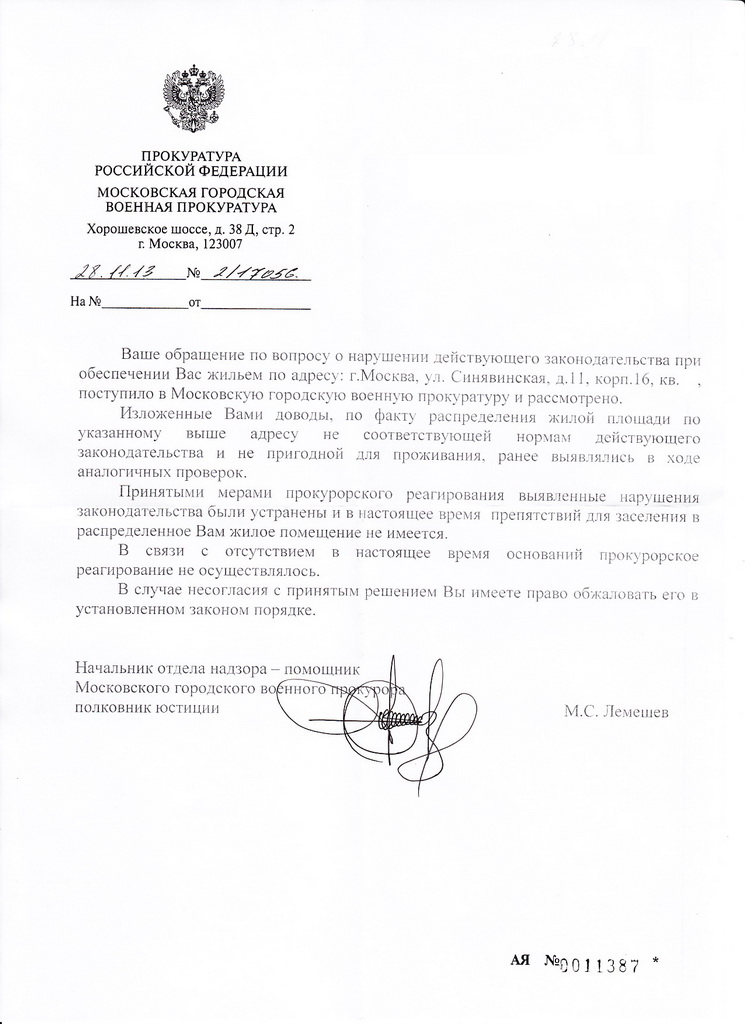 Моё мнение, военная прокуратура, являясь зависимым, как я думаю, органом в "вертикали власти", не хочет видеть никакие нарушения Минобороны в жилищной сфере, либо с определённого момента ей запретили усматривать такие нарушения, образно - принудительно "включили" режекторный фильтр настроенный на жалобы по жилью построенному Минобороны