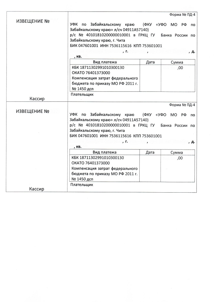 Я не думаю, что ТС платежки рассылают к каждому военному - если спросишь дадут ксерокопию платежки- образец в ТС не более того, т.к. эта операция по оплате превышения ДОБРОВОЛЬНАЯ, а если Вам ТС присылает платёжку, то это уже принудительная операция по оплате превышения ....