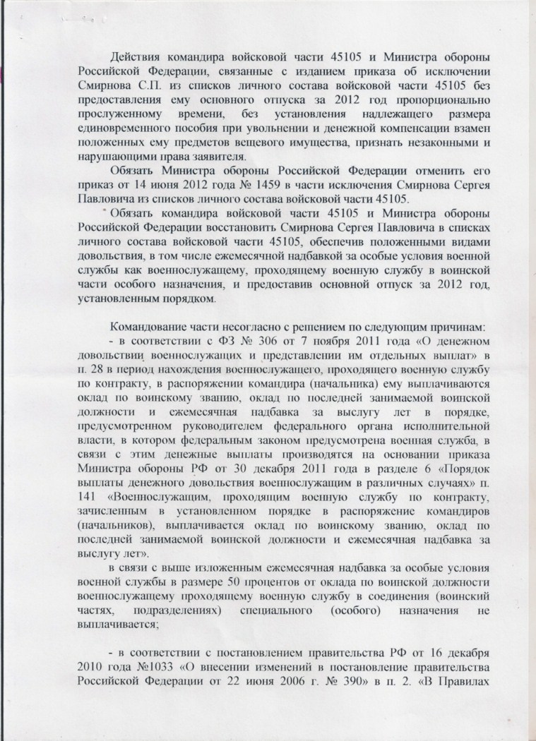 Тогда не понятно,зачем на форуме на множестве страниц так подробно обсуждать кого в качестве ответчика привлекать к суду (МО или командира,ЕГРЦ и т.д.)Заявление может быть краткое. Исключен из списков части такого того. Денежное довольствие не выплачено. Прошу призначть приказ ... об исключении незаконным и восстановить. А остальное будете говорить на судебном заседании.