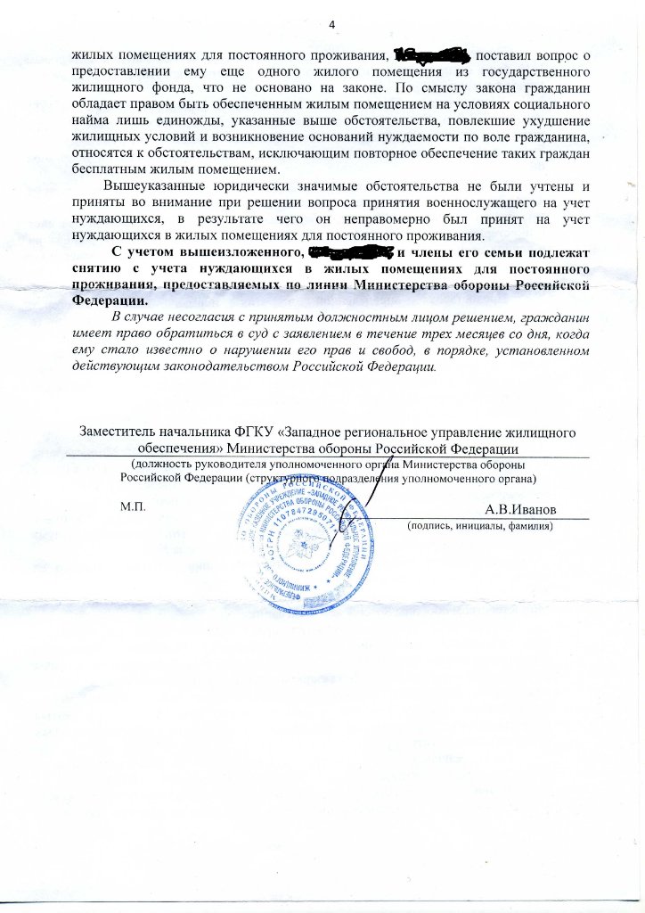 Решением Пушкинского гарнизонного военного суда от 10 апреля 2008 г., оставленным без изменения определением Ленинградского окружного военного суда, Г. отказано в удовлетворении заявления, в котором он просил признать незаконным решение начальника квартирно-эксплуатационной части об отказе в принятии заявителя и членов его семьи на учет нуждающихся в жилом помещении и возложить на указанное должностное лицо обязанность по принятию заявителя с составом семьи четыре человека на такой учет.