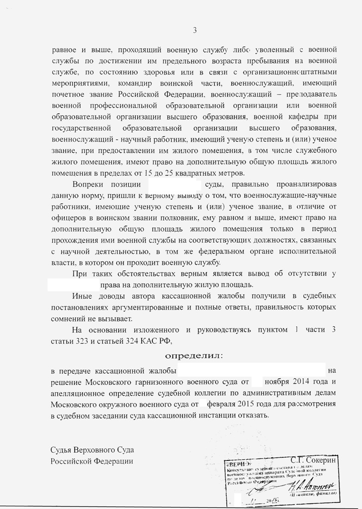 Т.е. иными словами "распоряжене" не может лишить права на доп площадь! А все решения судов по отказу , основываются на нахождение в "распоряжении" ))! У кого какое мнение ?QR_BBPOST Положение, содержащееся в пункте 4 статьи 42 Федерального закона "О воинской обязанности и военной службе", не связано с правом военнослужащих на обеспечение жилыми помещениями по избранному месту постоянного жительства и само по себе не влияет на реализацию данного права.
