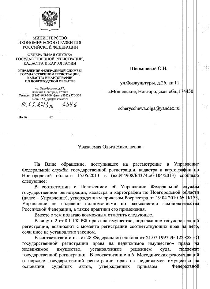 1. Права на недвижимое имущество, установленные решением суда, подлежат государственной регистрации