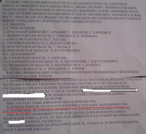 Ну предположим предлагают военному в распоряжении запредельщику эти города, а у него ИПМЖ Мос область г.Красногорс, что он им может ответить "читайте рапорт на признание нуждающимся" какая беседа? просто бредятина какая-то